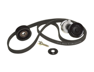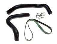 Kit designed to correct OEM situation where upper radiator hose must be removed to replace the serpentine accessory drive belt.