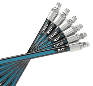 Using materials science and process innovation, combined with a patent-pending construction, Gates now offers a new hydraulic solution that is lighter, stronger, and more flexible. Made with strong, high-performing reinforcement and high quality, abrasion-resistant rubber, MXT™ is a universally applicable premium product offering performance above industry standards. Its diversified application allows you to consolidate inventory while giving you exactly the hose you need, when you need it.